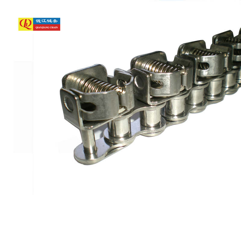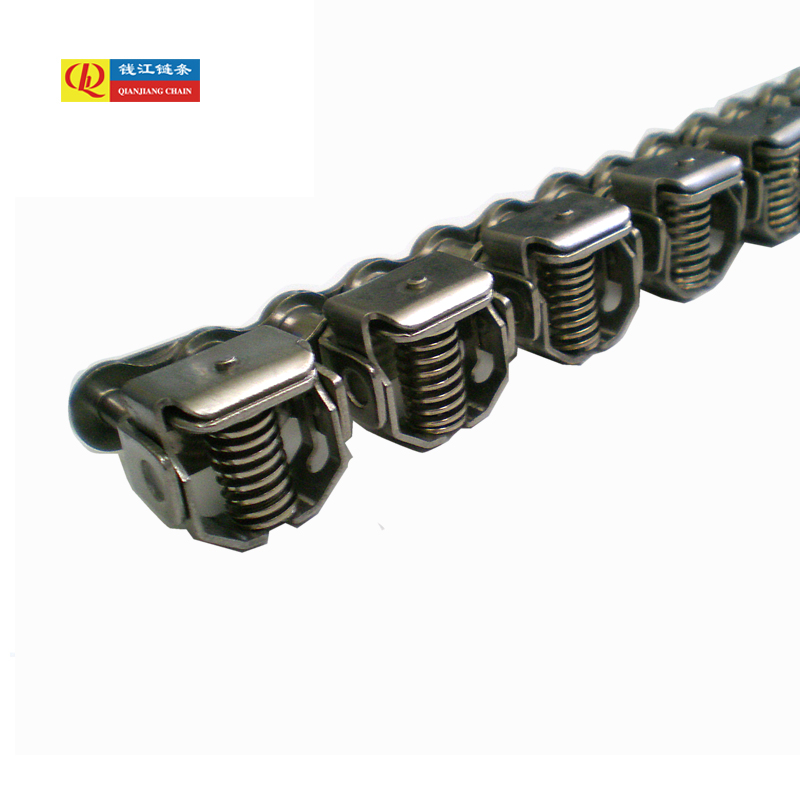 স্টেইনলেস স্টিলের ক্ল্যাম্পিং চেইন যেমন 08B এবং 10B হ্যাংঝো কিয়ানজিয়াং চেইন ইন্ডাস্ট্রিজ দ্বারা নির্মিত একটি বিশেষ ধরনের ইলাস্টিক পরিবাহক চেইন। তাদের ফাংশন সহজ পরিবহন অতিক্রম করে; মূল বৈশিষ্ট্যটি নিরাপদে এবং স্থিরভাবে চলাফেরার সময় ওয়ার্কপিসটিকে ধরে রাখা। এই নকশাটি গঠন এবং প্রয়োগ উভয় ক্ষেত্রেই স্ট্যান্ডার্ড কনভেয়র চেইন থেকে উল্লেখযোগ্যভাবে পৃথক।
