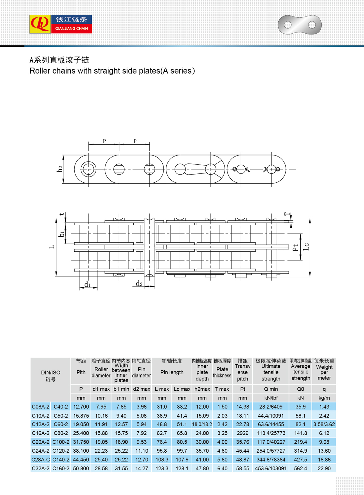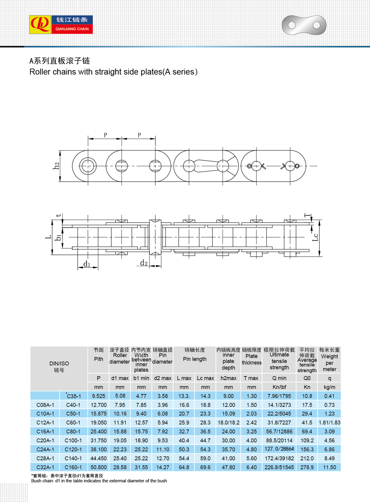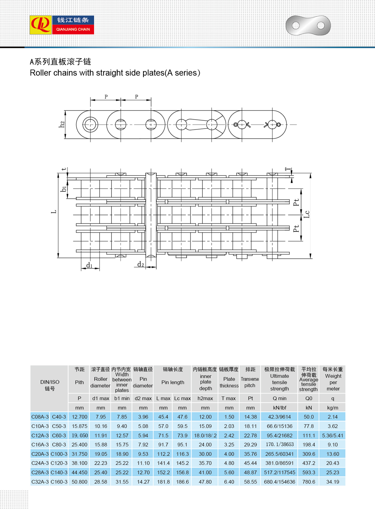 সোজা সাইড প্লেট সহ রোলার চেইন (এ সিরিজ)
