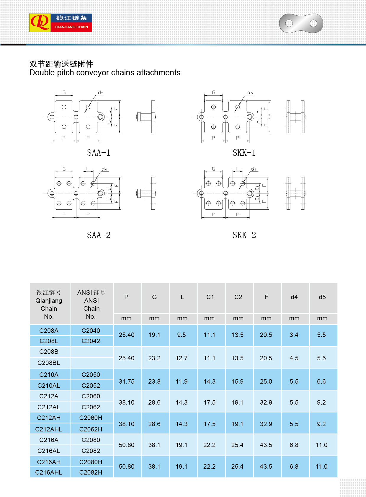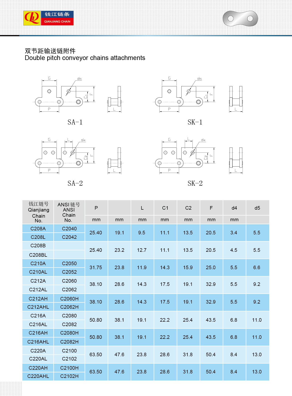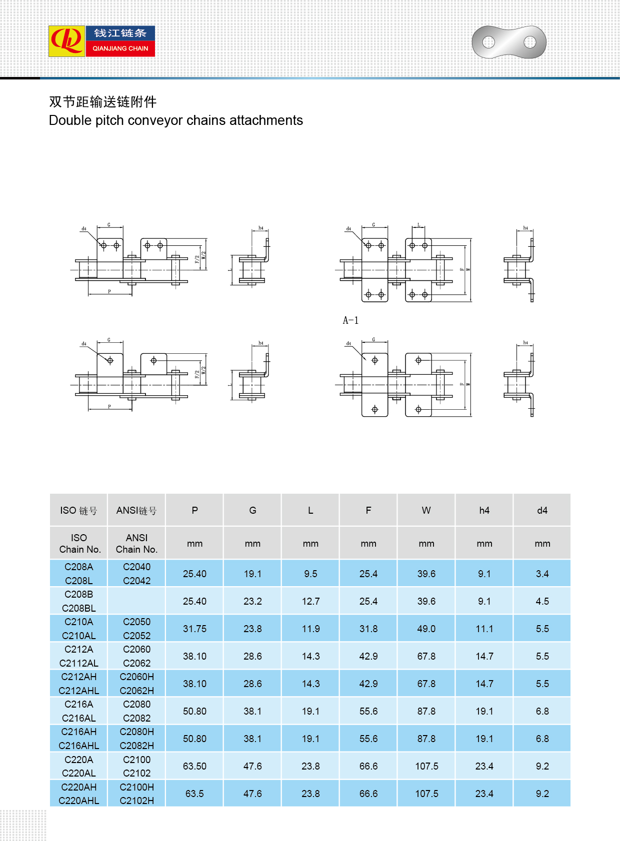 ডাবল পিচ পরিবাহক চেইন সংযুক্তি