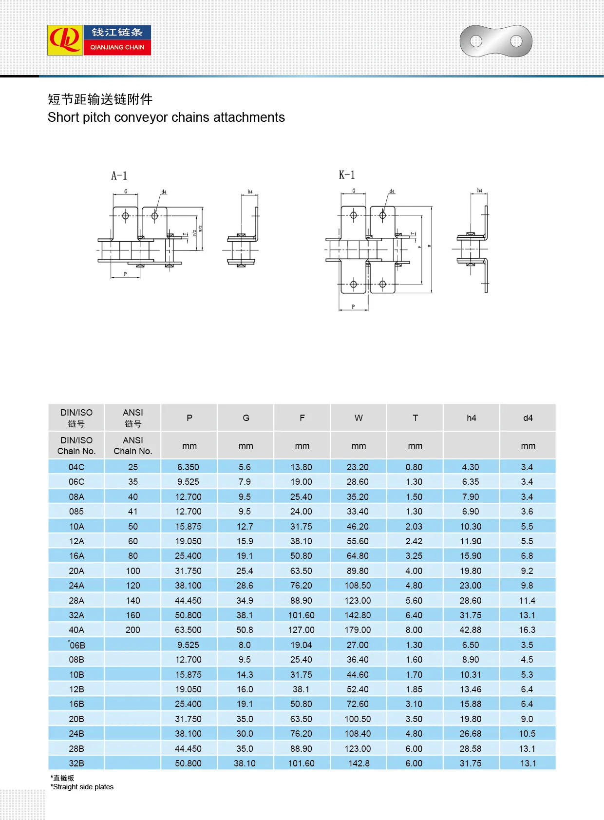 পরিধান প্রতিরোধ ক্ষমতা এবং ভারী ভারের মধ্যে সামঞ্জস্যপূর্ণ কর্মক্ষমতা সহ, আমাদের চেইনগুলি শুধুমাত্র সরঞ্জামের আয়ু বাড়ায় না কিন্তু অপারেশনাল খরচও কমায়। অতুলনীয় গুণমান এবং অভিযোজনযোগ্যতার জন্য সংযুক্তি সহ শর্ট পিচ কনভেয়র চেইন বেছে নিন—আপনার ব্যবসাকে নির্বিঘ্নে এগিয়ে যাওয়ার ক্ষমতা প্রদান করুন!
