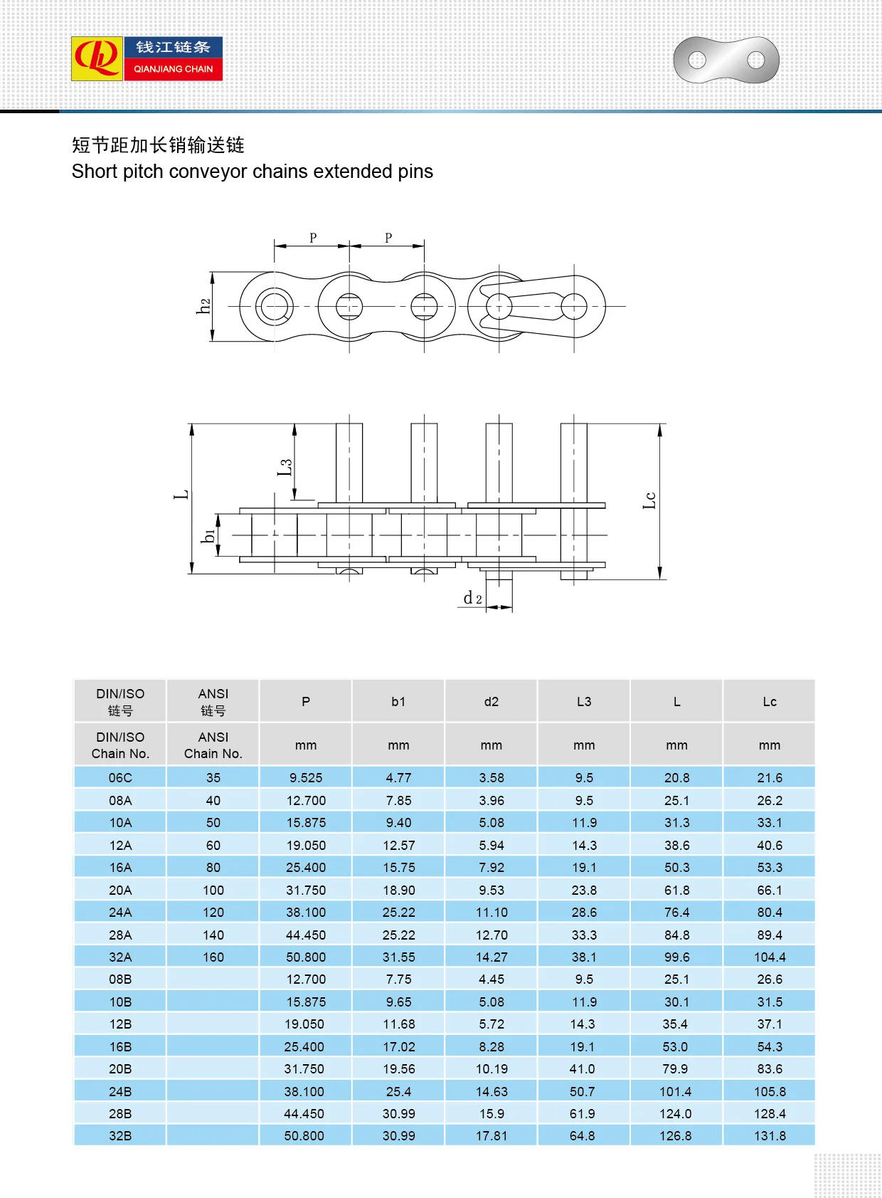 সংক্ষিপ্ত পিচ পরিবাহক চেইন বর্ধিত পিন