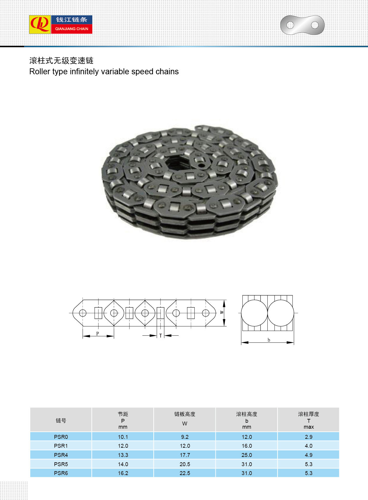 রোলার টাইপ সহ PSR অসীম পরিবর্তনশীল গতির চেইন